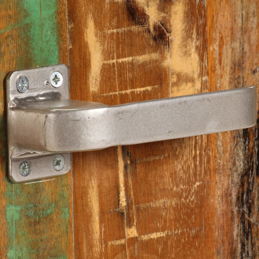 Sengeskabet er lavet af massivt, genanvendt træ, som stammer fra tværbjælker, gulve og støttebjælker fra gamle, nedrevne bygninger, og de kan bestå af forskellige trætyper såsom fyrretræ, teak, bøg, eg, ceder, mangotræ, akacie osv. Dette betyder, at genbrugstræ bevarer karakteristikkerne af disse forskellige trætyper. Genbrugstræ er allerede aldret, forvitret og tørret, så det skrumper eller bukker ikke. Dette natbord er 100 % håndlavet, og de flotte åremønstre gør hvert møbel karakteristisk og en smule anderledes. Metaldetaljerne føjer til skabets industrielle stil. Dette kasseskab giver plads til opbevaring af dine bøger, notesblokke, kuglepenne samt andre småting. Skabet kan let flyttes rundt, da det er forsynet med 4 hjul.
