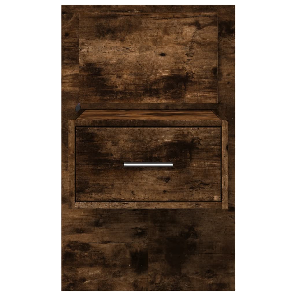 væghængte sengeborde 2 stk. med LED-lys røget egetræsfarve