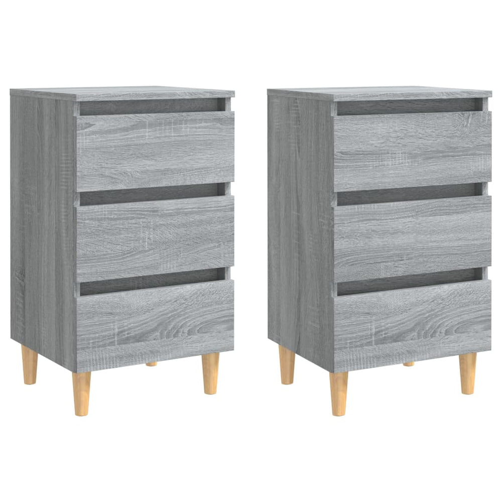 sengeborde 2 stk. med massive træben 40x35x69 cm grå sonoma-eg