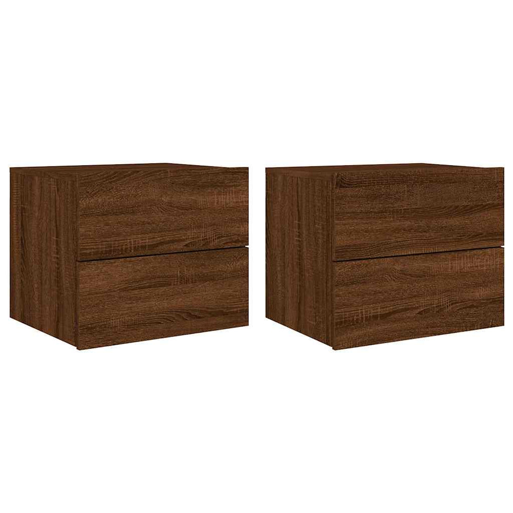 væghængte sengeborde 2 stk. 38x34x40 cm brun egetræsfarve