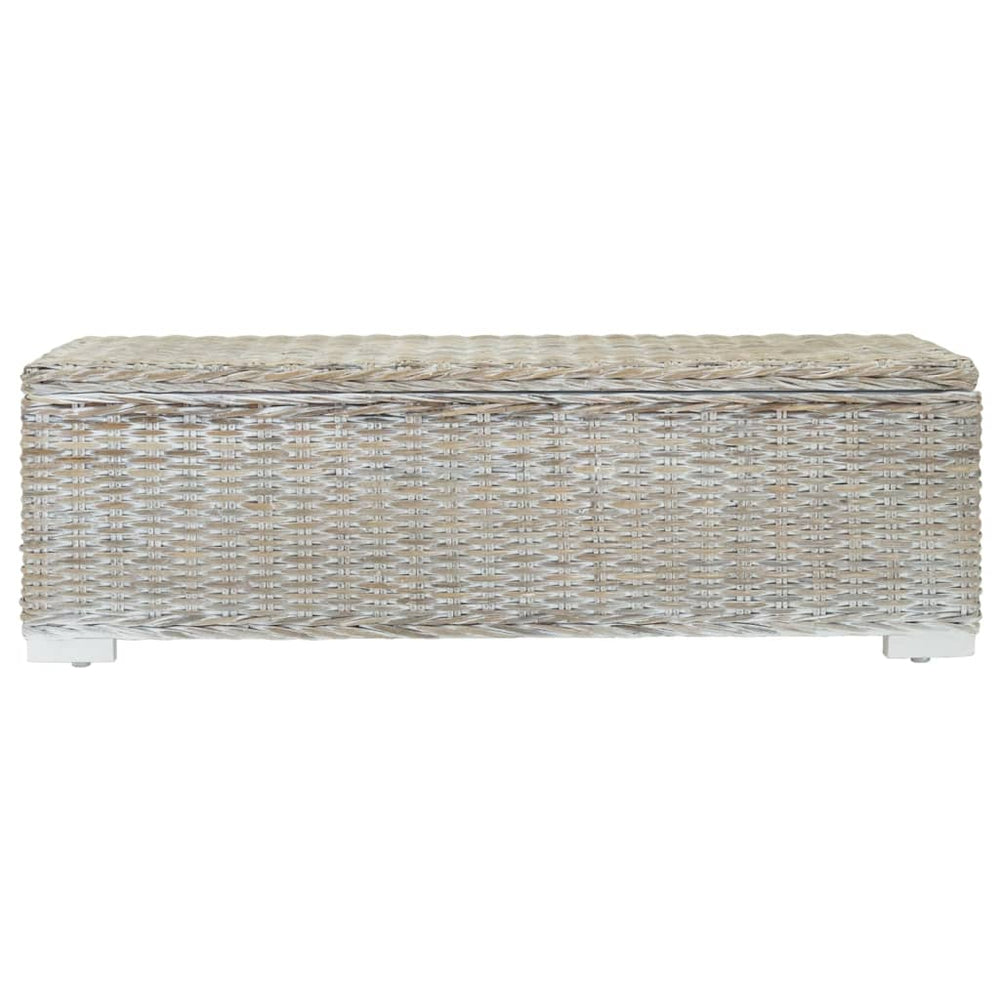 opbevaringsboks 110 cm naturlig kubu-rattan massivt mahogni grå