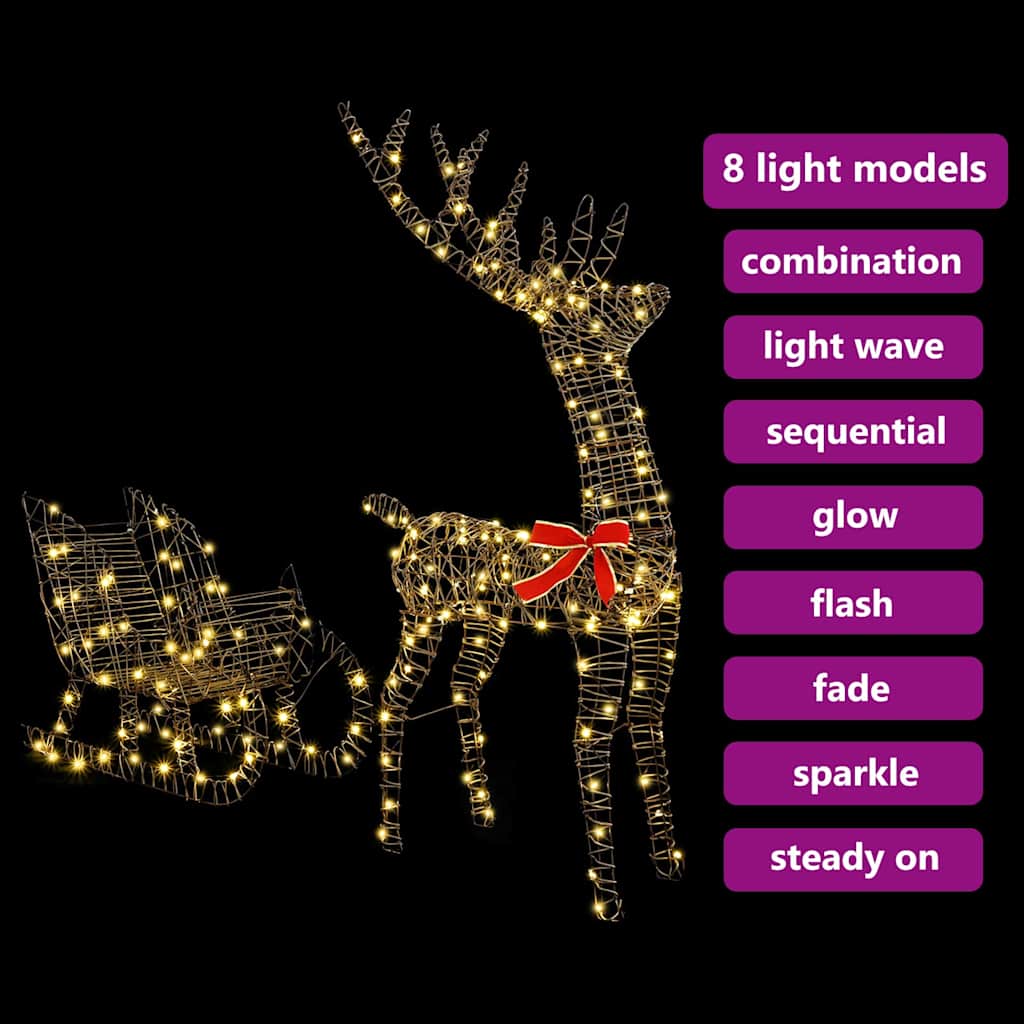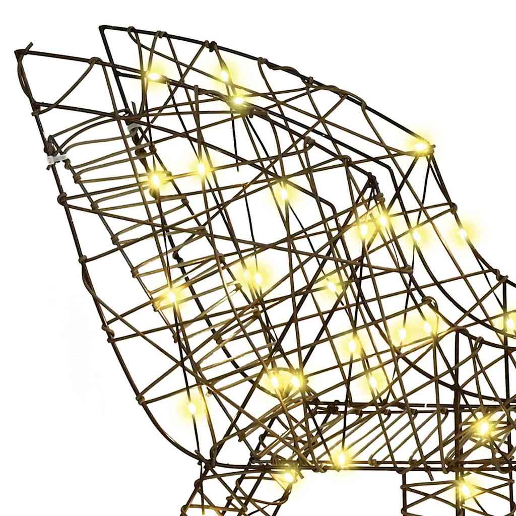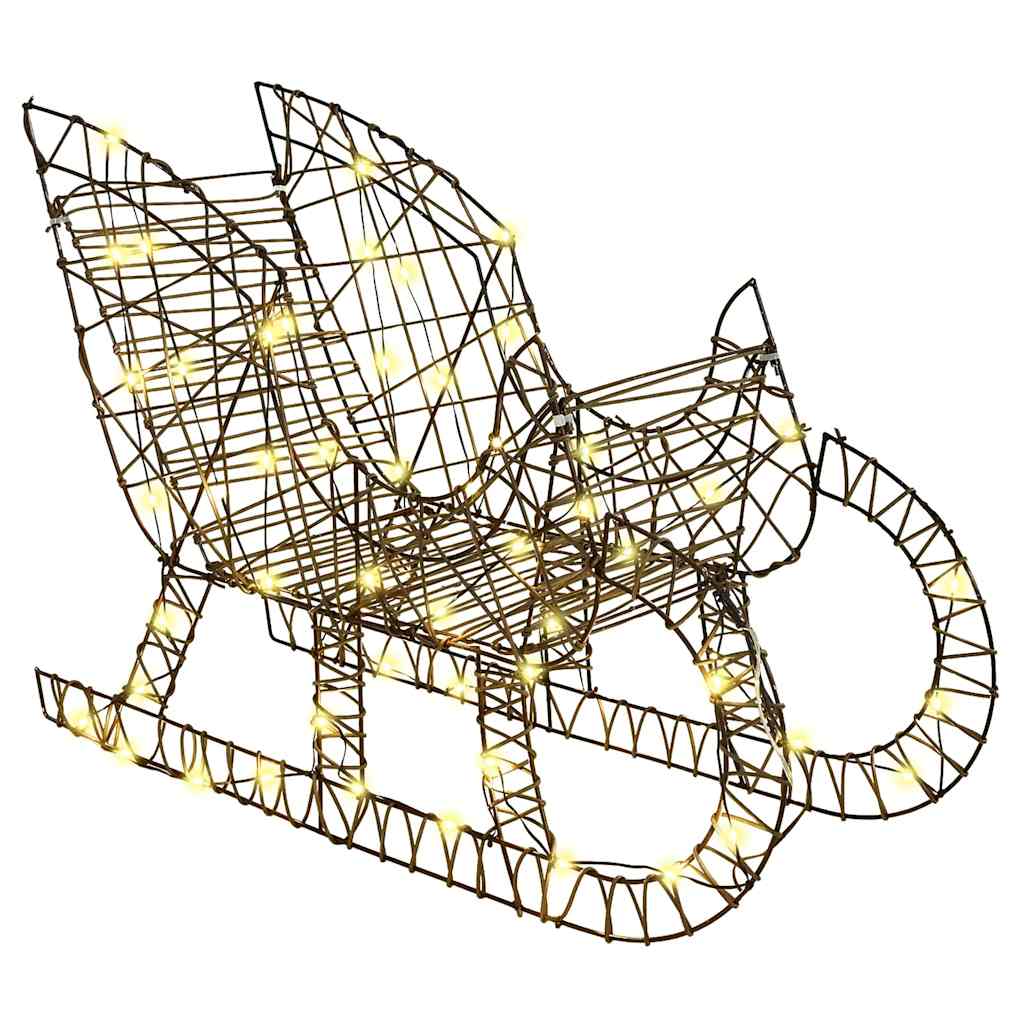 • Kvalitetsbelysning: Med fleksible LED strip lys, kaster denne rensdyrslæde en hyggelig glød i enhver indretning. Den varme hvide nuance skaber en indbydende atmosfære, perfekt til hyggelige indendøre eller som et blikfang udendørs.