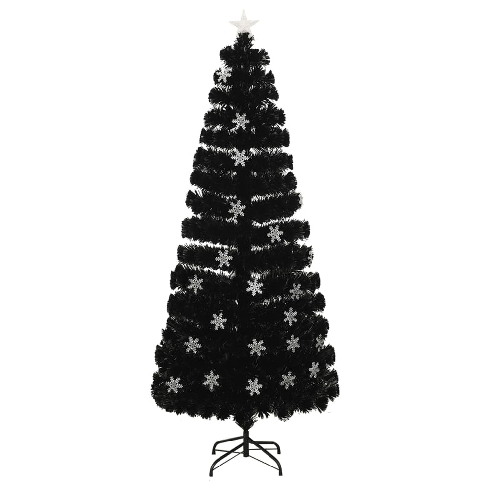 juletræ med LED-snefnug 210 cm fiberoptik sort