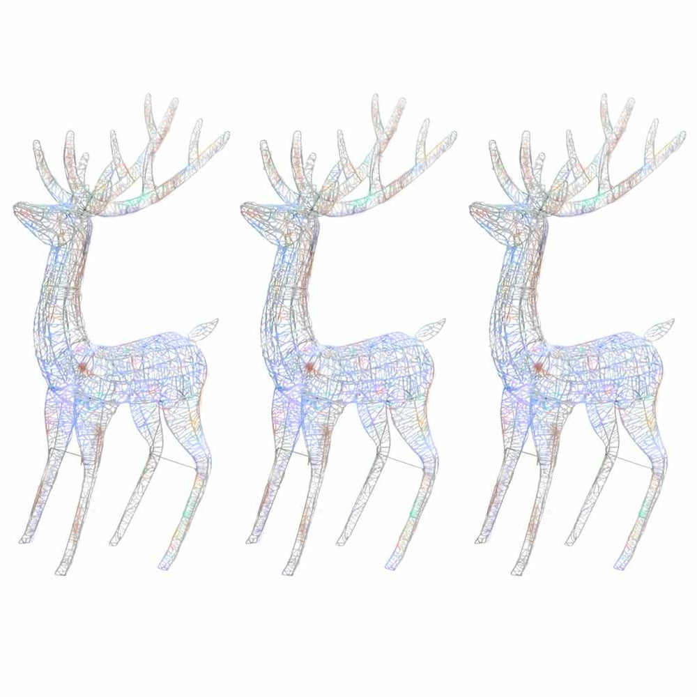 julerensdyr 3 stk. 180 cm 250 LED'er akryl flerfarvet lys