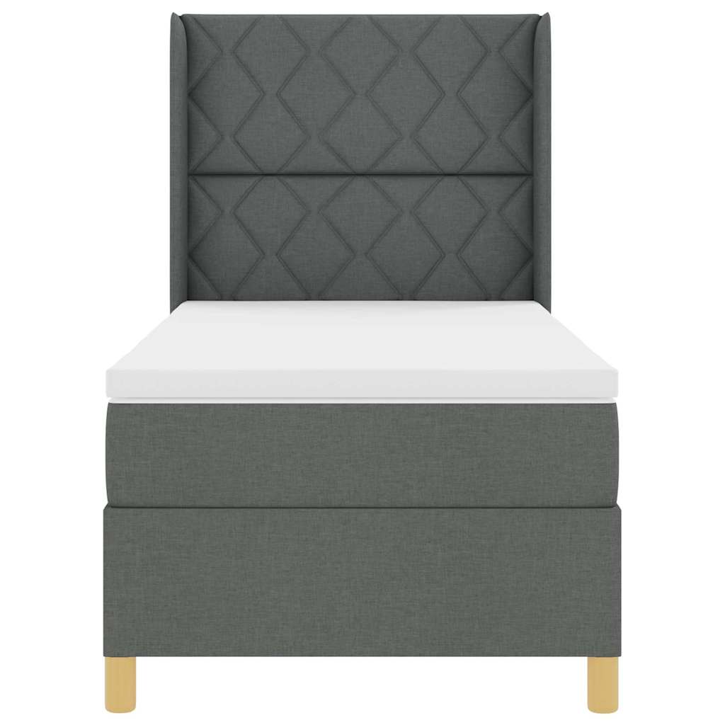 Boks-madrasseng med madras Mørkegrå 90 x 190 cm Stof