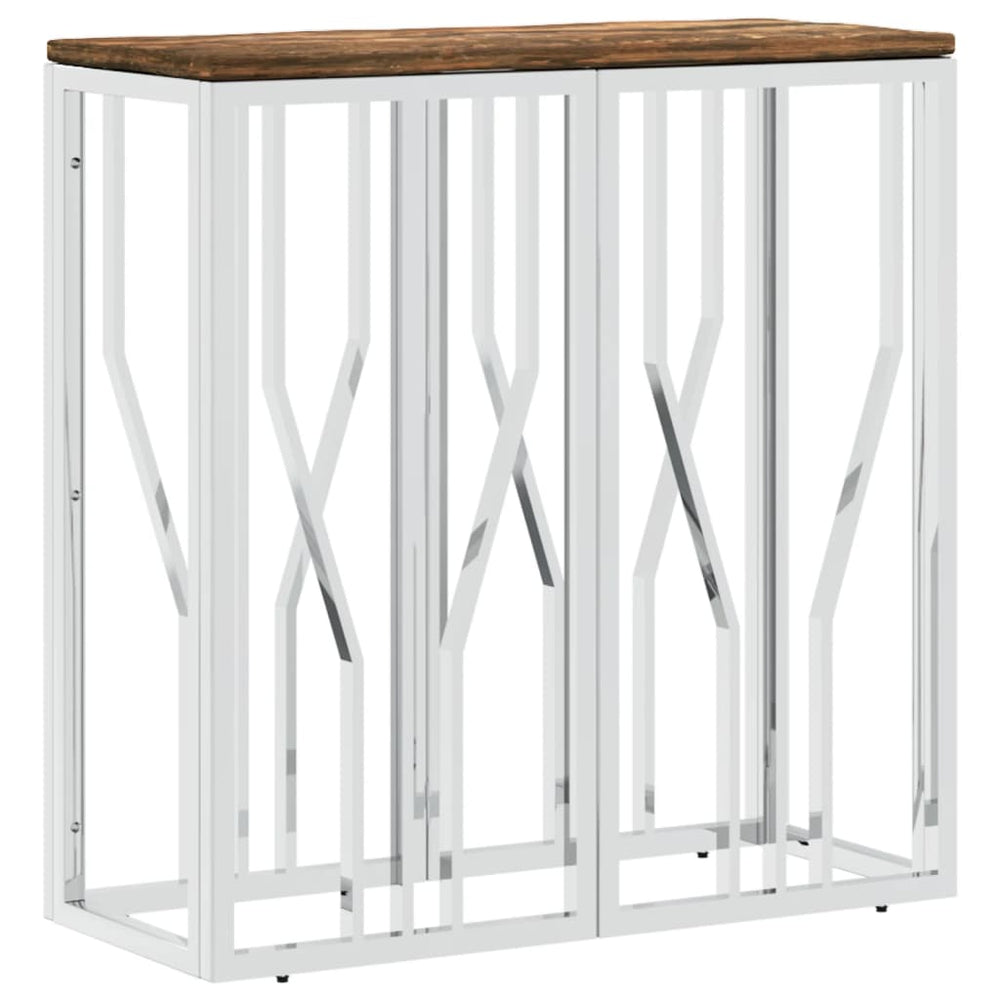 konsolbord rustfrit stål og massivt genbrugstræ sølvfarvet
