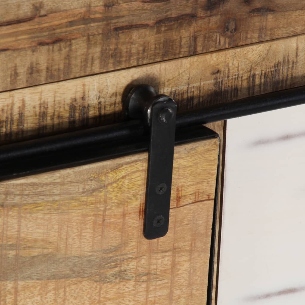 Skabet er lavet af massivt mangotræ, et hårdttræ med tætte årer. Ru mangotræ har ikke kun styrken til at bære vægten, men modstår også tidens slid. Derfor er denne smukt designede skænk yderst stabil, holdbar og æstetisk tiltalende. De udsøgte åremønstre gør hvert møbel karakteristisk og lidt anderledes end de andre. Denne skænk har 7 skuffer og 2 skabe med 2 låger, hvilket giver rigelig plads til opbevaring af sko, bøger samt forskellige andre ting.