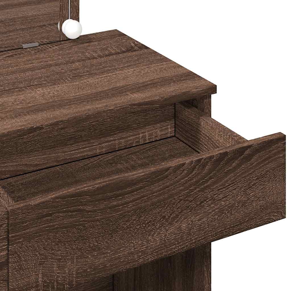 makeupbord med LED-lys 100x40x120 cm brun egetræsfarve