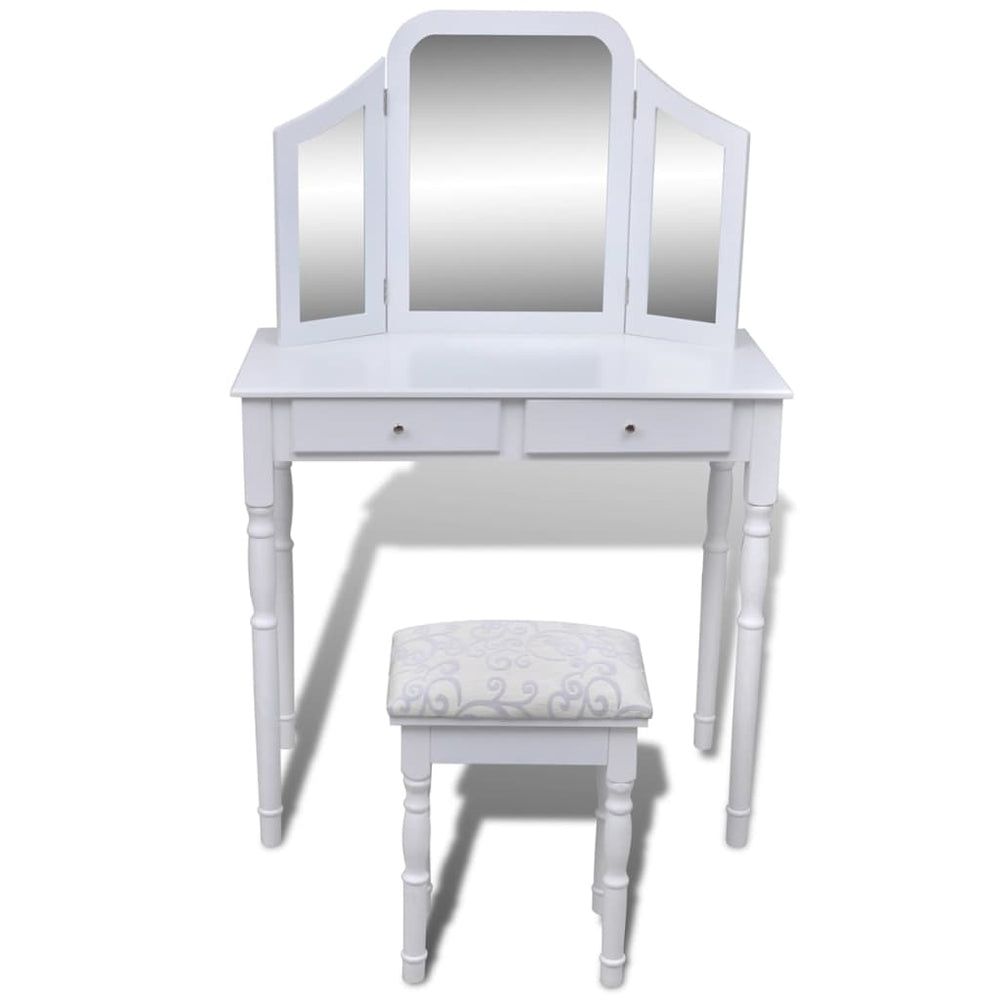 sminkebordssæt med taburet 80x69x141 cm kejsertræ hvid