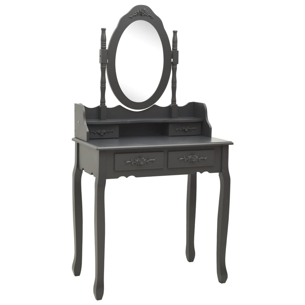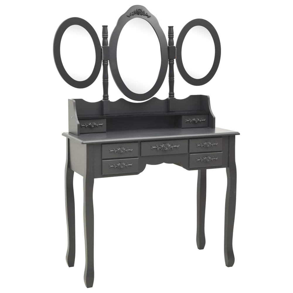 sminkebordssæt med taburet 80x69x141 cm kejsertræ grå