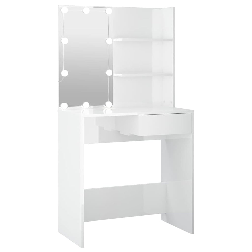 makeupbord med LED-lys 74,5x40x141 cm hvid højglans