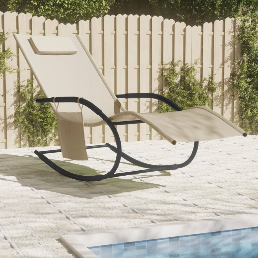 liggestol med gyngefunktion stål og textilene cremefarvet