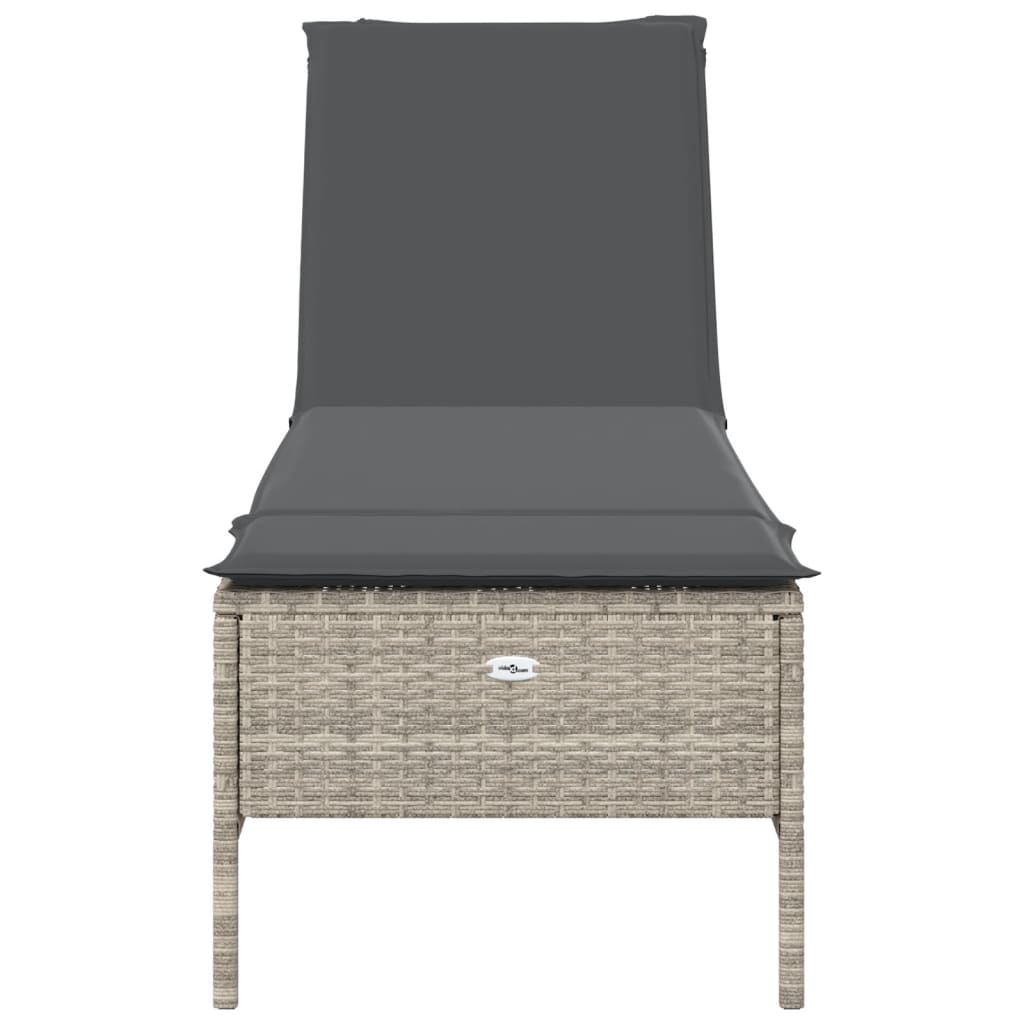 liggestol med hynde polyrattan lysegrå