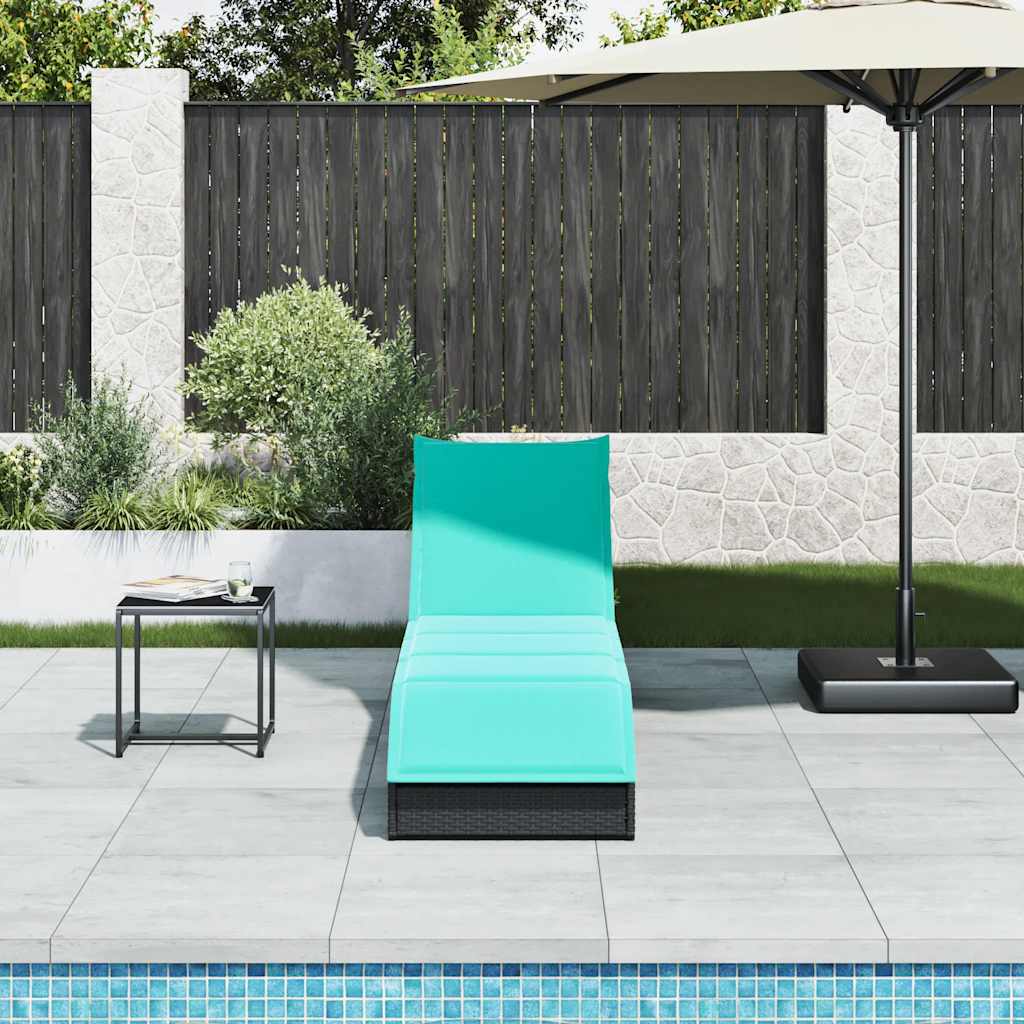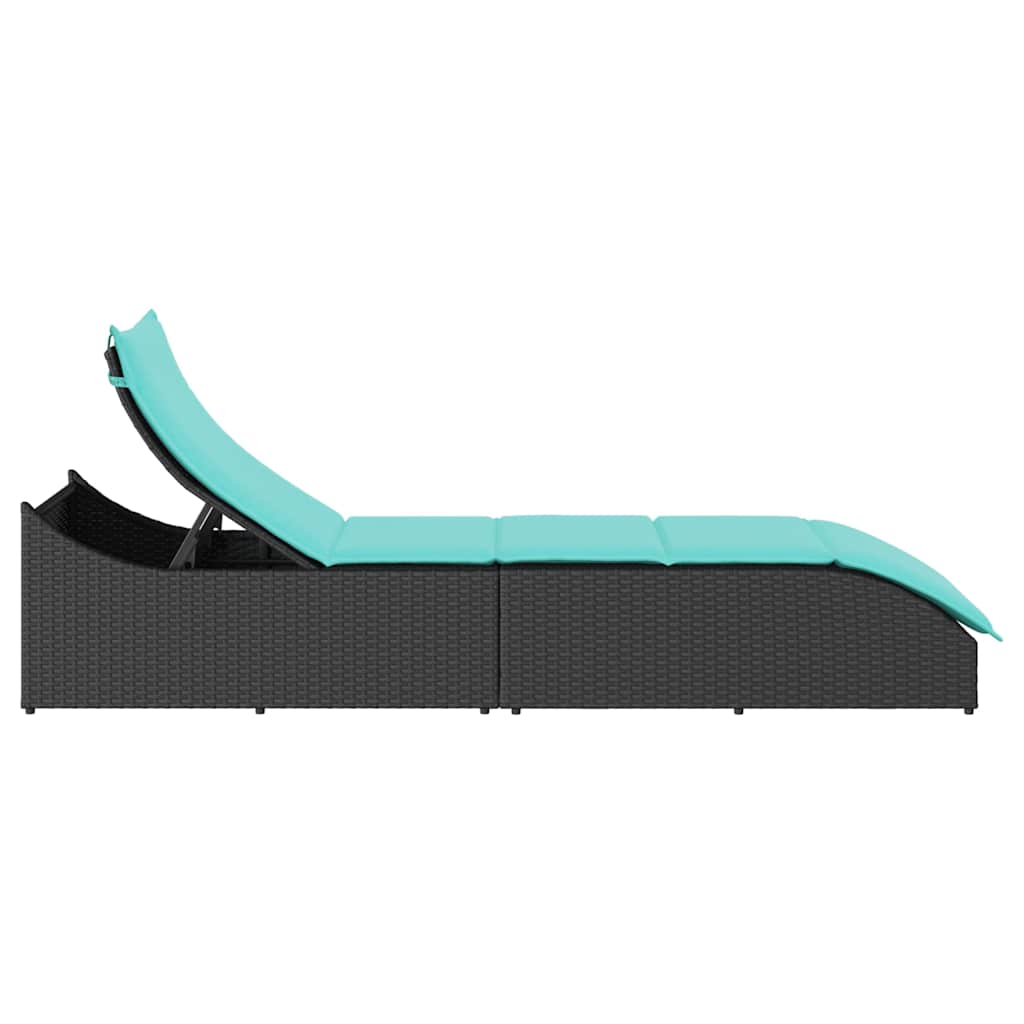 sammenklappelig solseng med hynde og opbevaring polyrattan sort