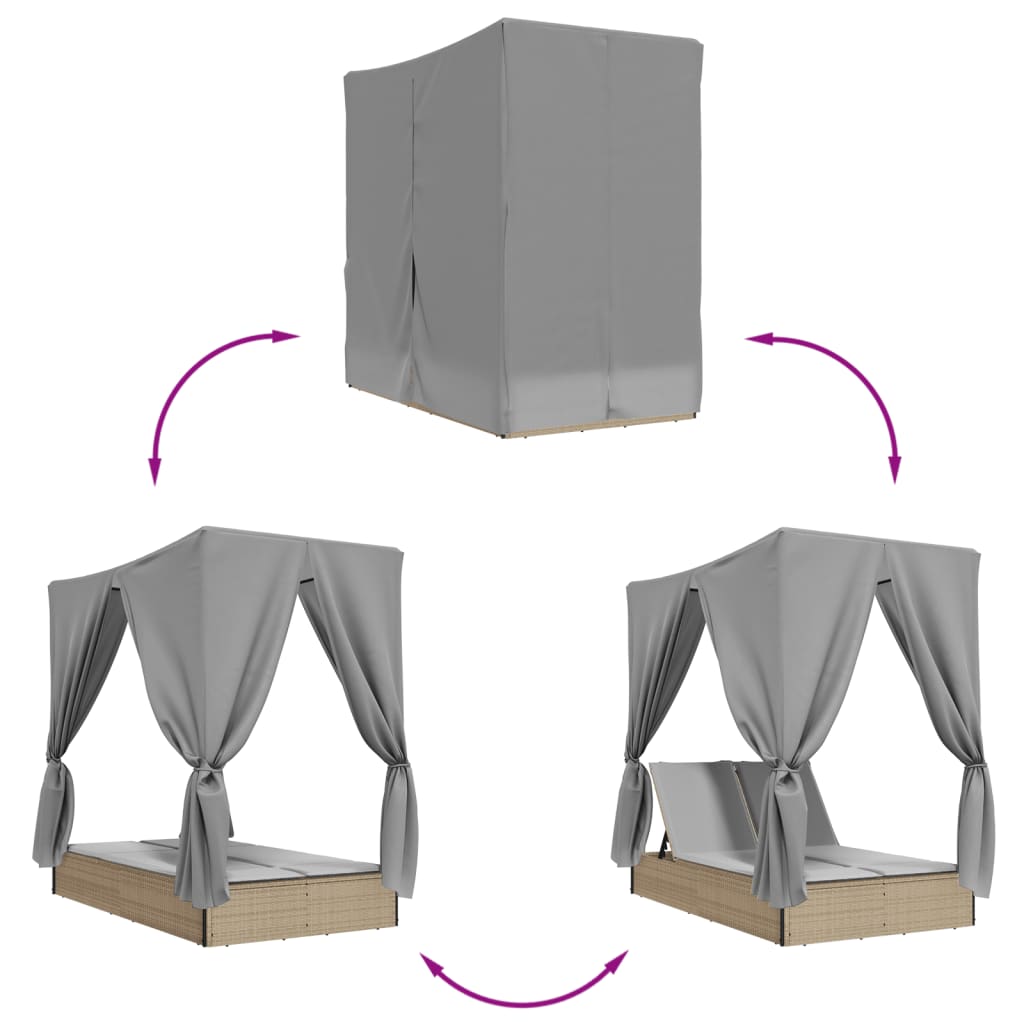 solseng med tag og gardiner polyrattan beige