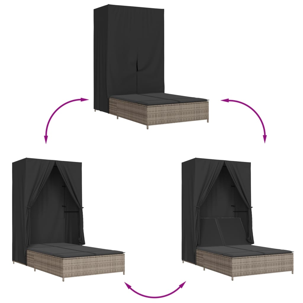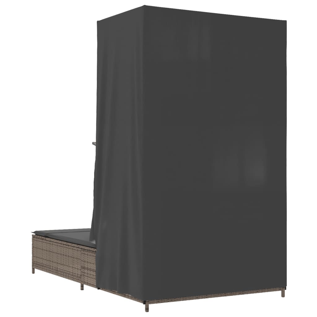 solseng med tag og gardiner polyrattan grå
