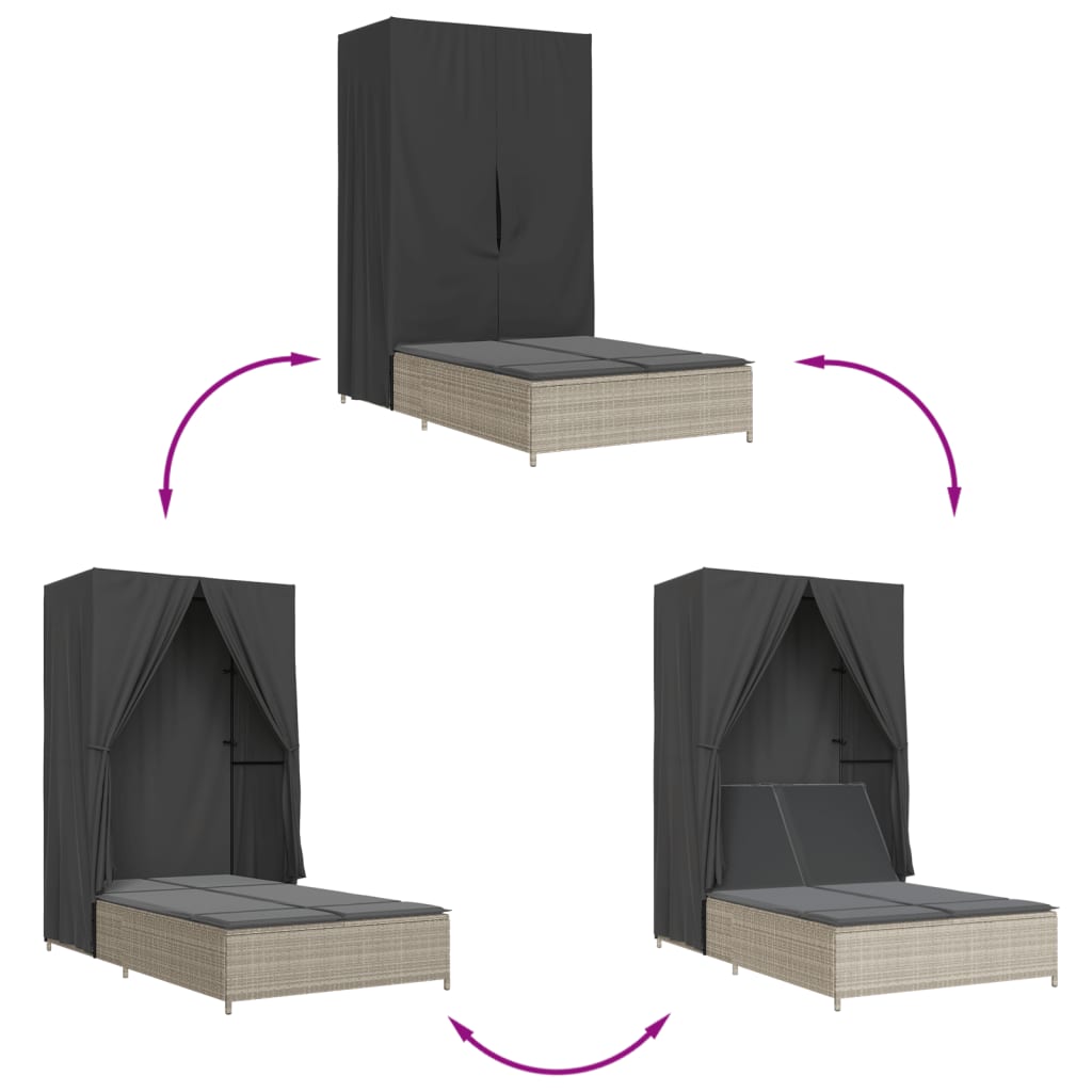 solseng med tag og gardiner polyrattan lysegrå