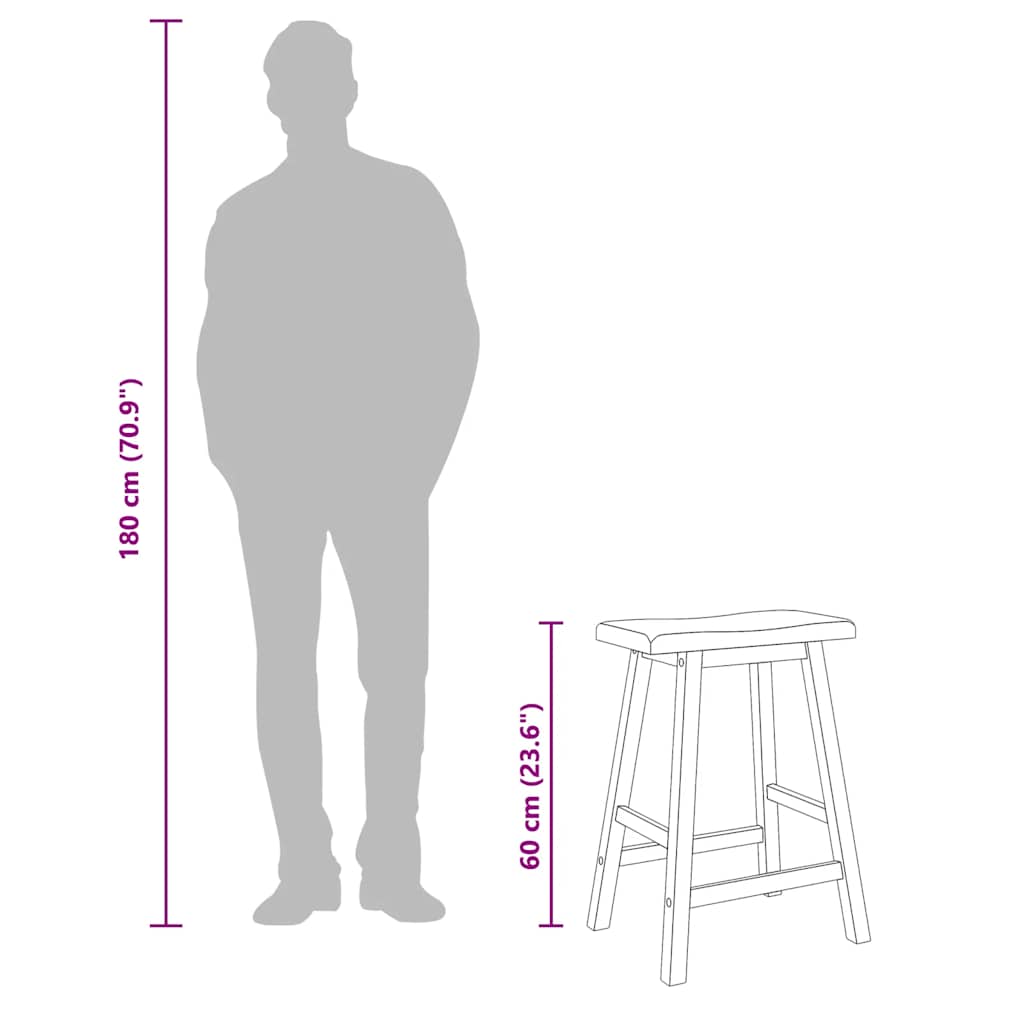 barstole 2 stk. massivt gummitræ naturfarvet