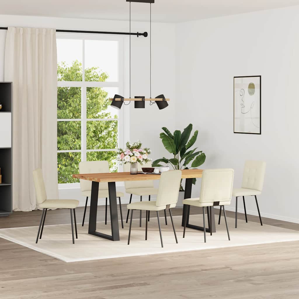 • Robust og stabilt stel: Spisestolen er understøttet af metal og træ, hvilket giver ekstra holdbarhed og stabilitet.