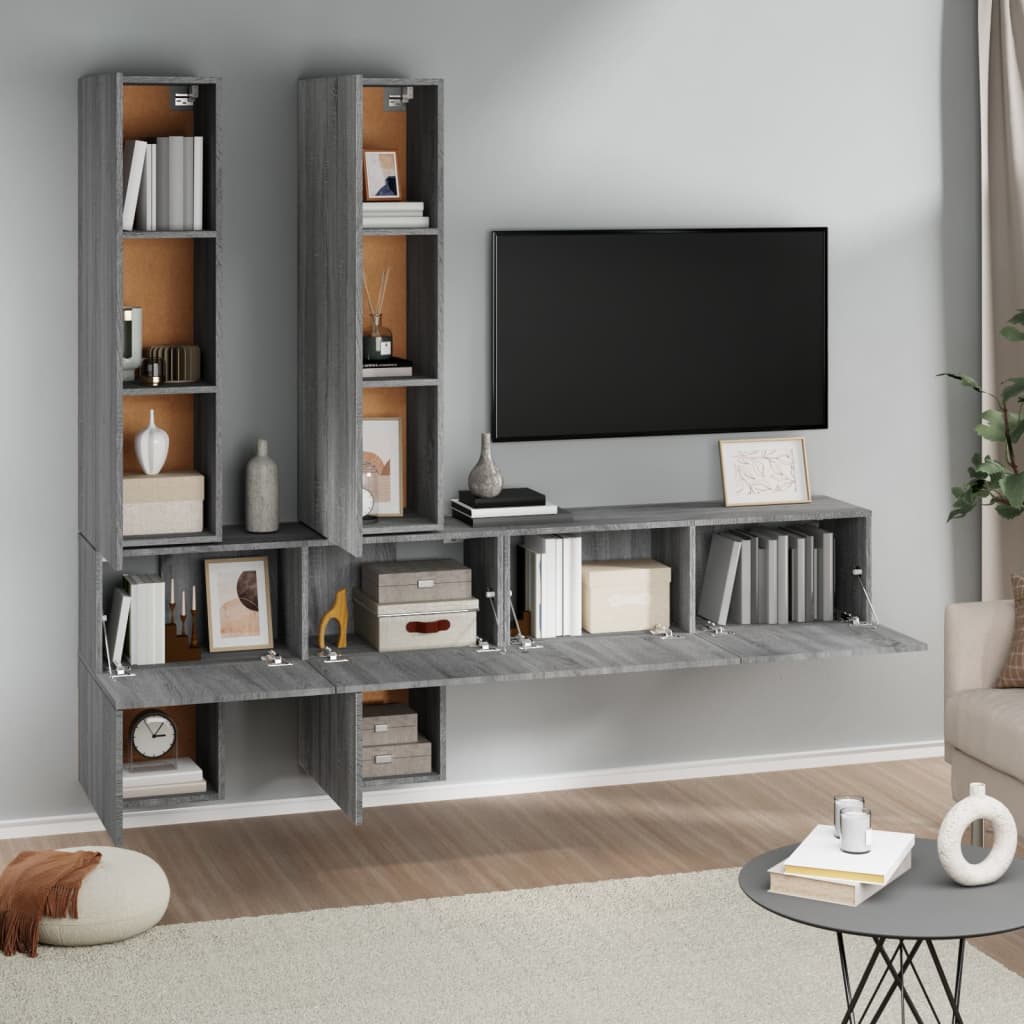 væghængt tv-bord 37x37x72 cm konstrueret træ grå sonoma-eg