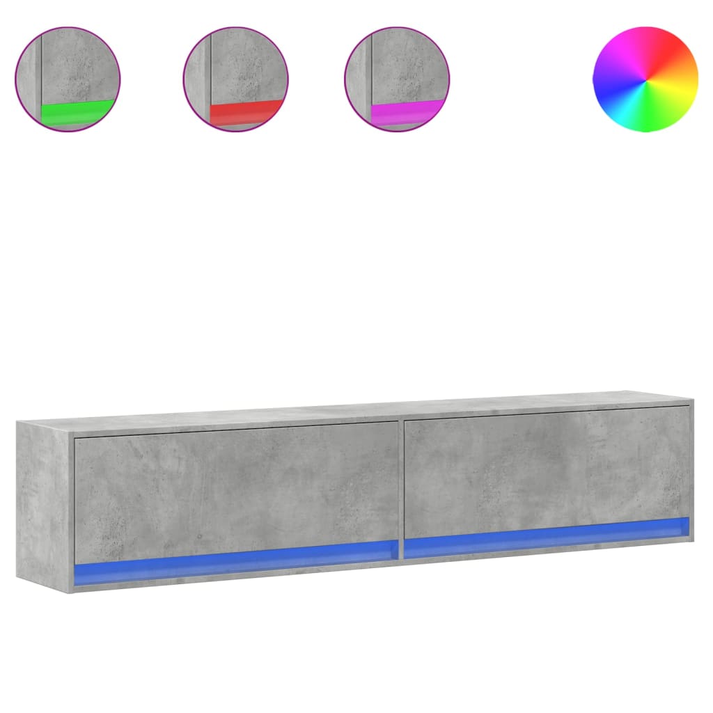 væghængt tv-bord med LED 180x31x38 cm betongrå