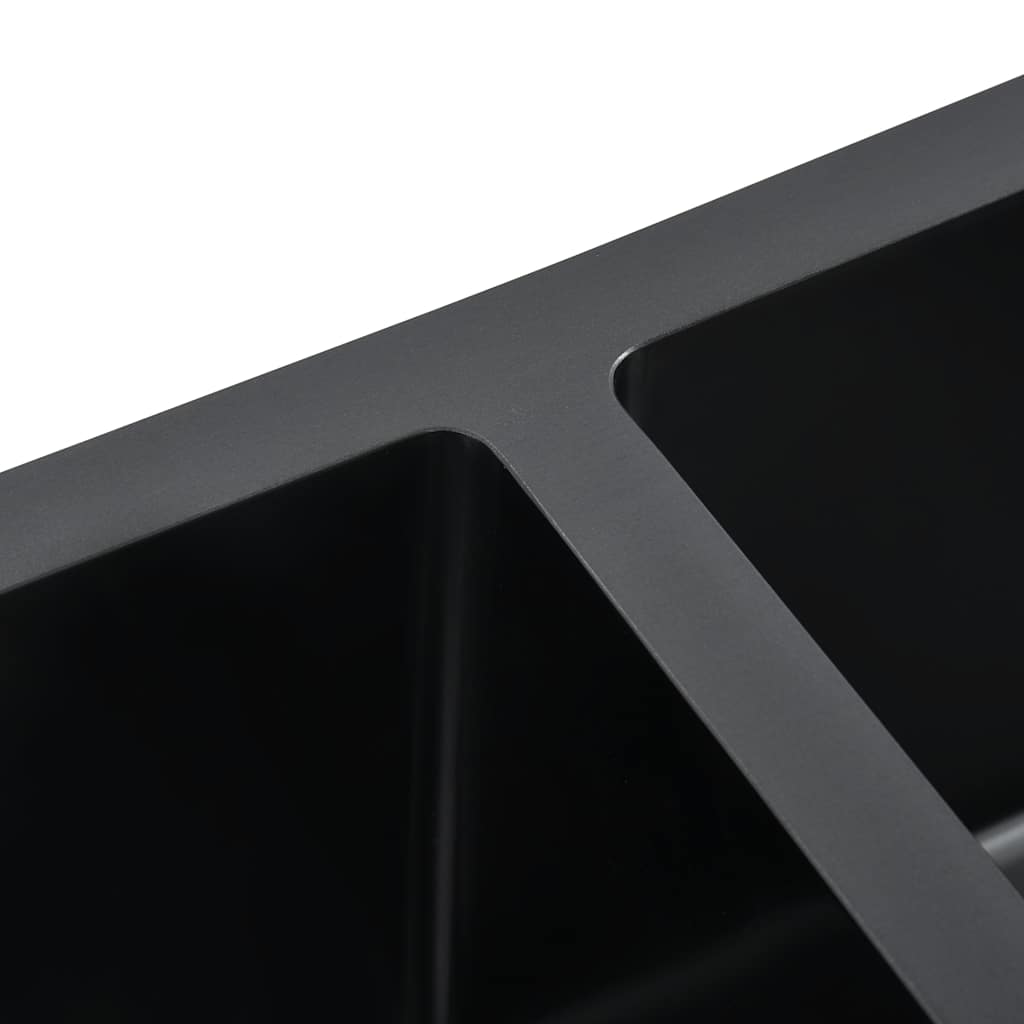 Denne vask med to kummer kombinerer det bedste i funktion og design og er fremstillet af håndlavet rustfrit stål med antikondensmaling, skimmelsikker, blyfri og korrosionsbestandig. Den er lydisolerende med lydreducerende puder. Derudover giver vaskekummerne med et unikt X-flume-design et hurtigt vandflow og forhindrer, at vand bliver stående i bunden af vasken.