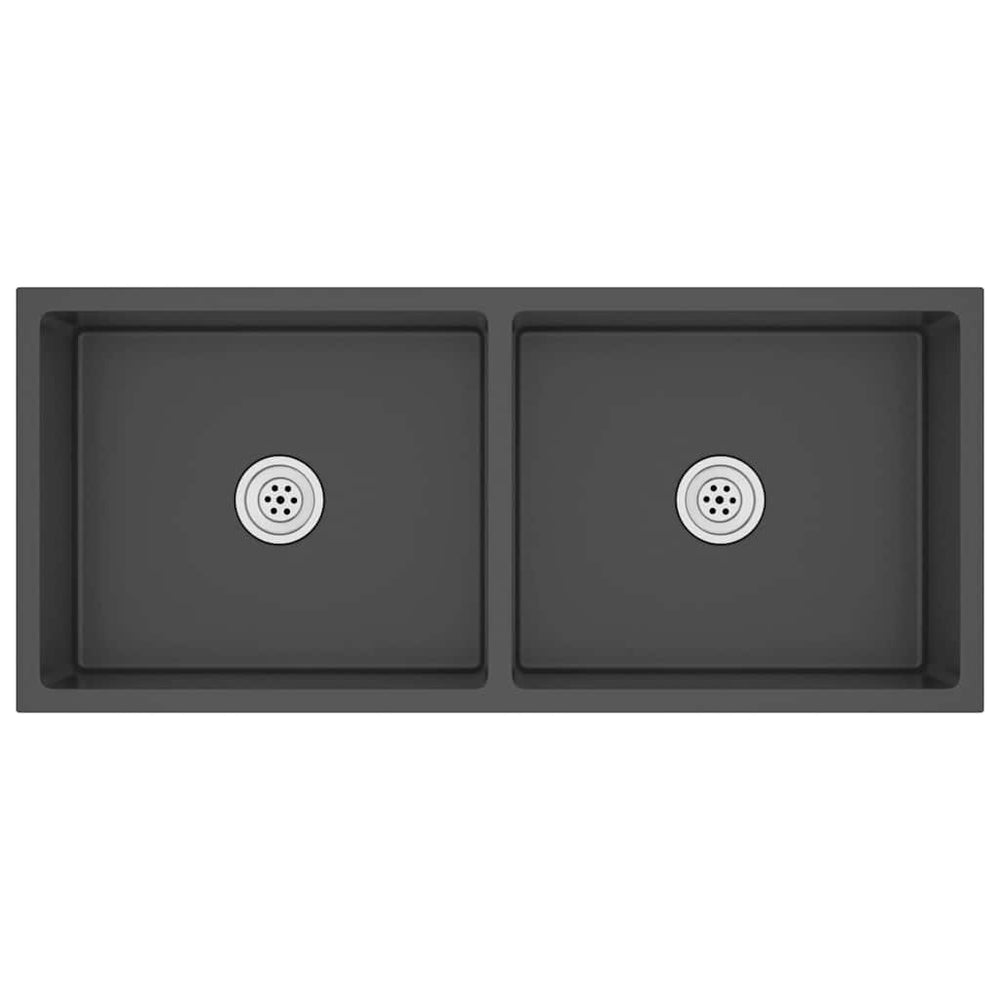 dobbelt køkkenvask med overløbshul granit sort