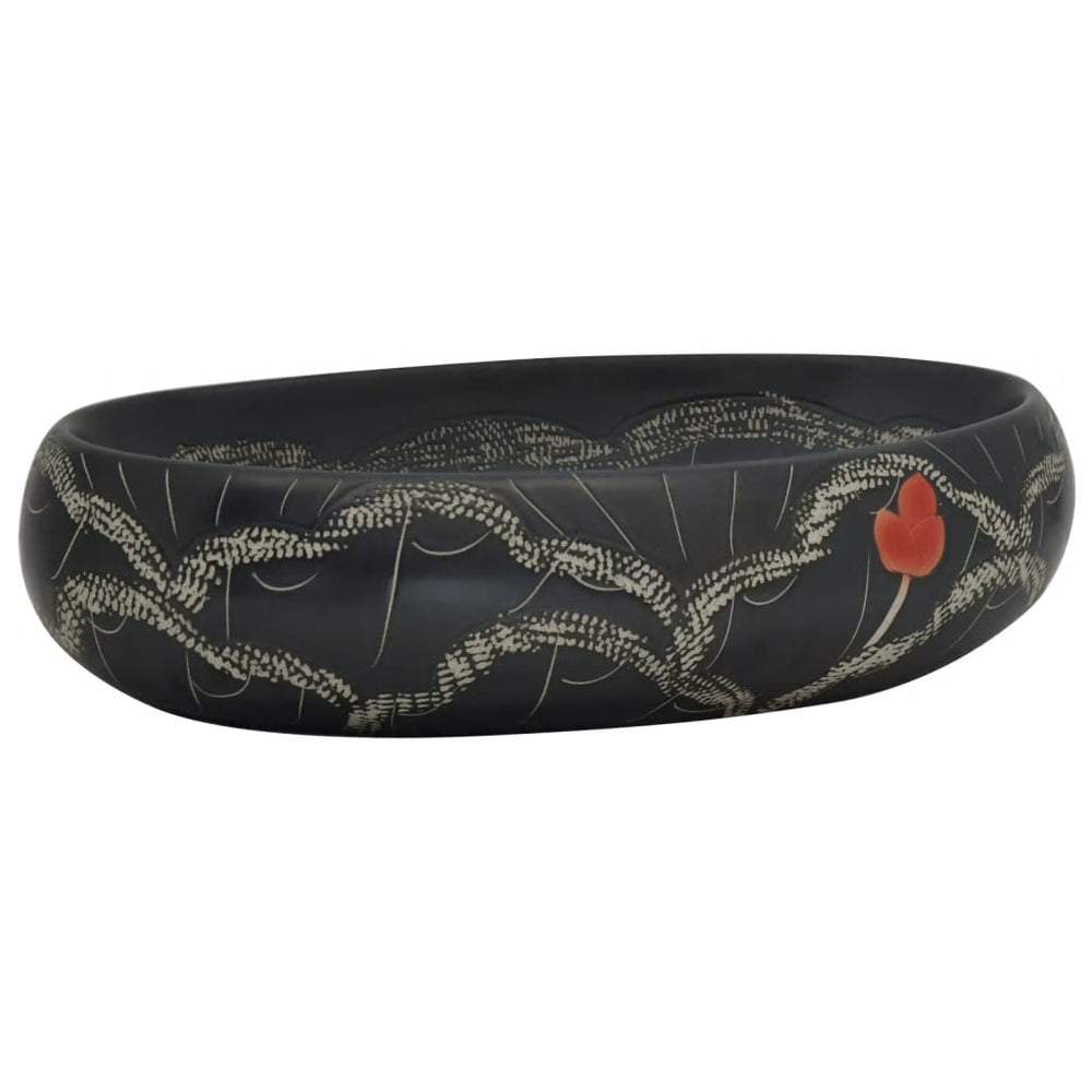 håndvask til bord 56,5x36,5x13,5 cm oval keramik sort og blå
